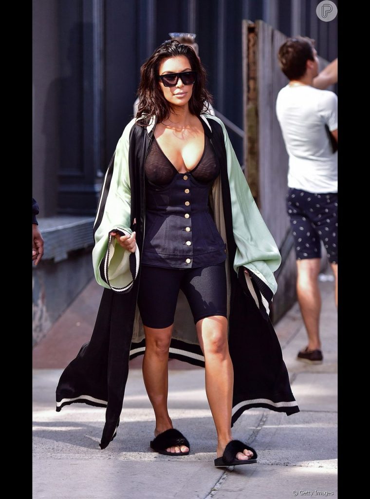 3 – RLS50™ | BLOG50™ | *Kim Kardashian – Entusiasta da bermuda a socialite consegue um look sexy com transparência, mesmo arrematando tudo chinelos slide © Getty Images